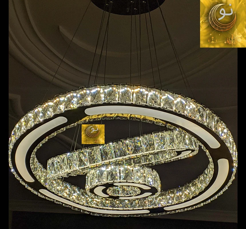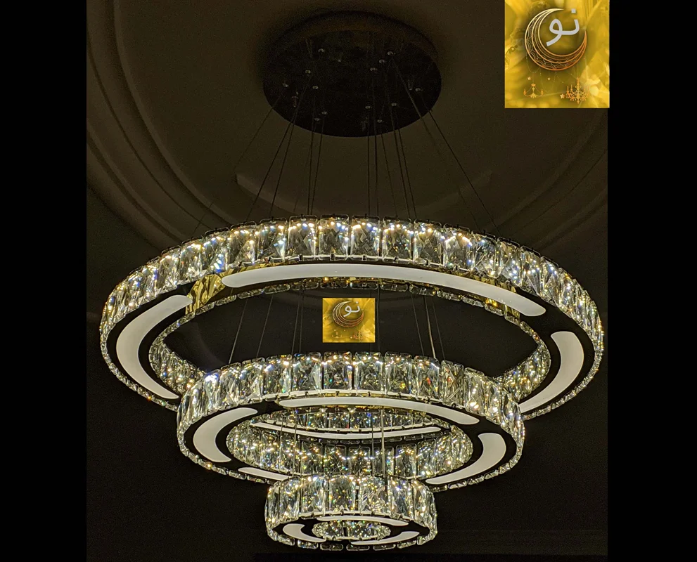 لوسترمدرن آویز گرد سایز 60-40-20 با کفی پلکسی از طرح های زیبای کهکشانی است که با کریستالهای نقطه ای جذاب تر شده است. ، ماه نو این نوع محصول را با هر طرح و اندازه مورد درخواست مشتری تولید می کند- ارتفاع محصول : ارتفاع قابل تنظیم از ۶۰ الی ۸۰ سانتی متر است ( ارتفاع بیشتر نیز بصورت سفارشی تولید میگردد)- قطر محصول : قطر صفحه استیلی که به سقف نصب میگردد ۳۰ سانتی متر و قطر حلقه های لوستر از بزرگ به کوچک ۶۰-۴۰-۲۰ cm است. - جنس محصول : بدنه از استیل درجه یک و براق است که روکش دار بوده و هیچ خط و خشی بر روی آن وجود ندارد و زمان نصب روکش استیل کنده میشود.- کریستال ها نیز از نوع سوپر کریستال و درجه یک 3 در 5 cm میباشد.- نوع لامپ محصول : لامپ های اس ام دی با بالاترین تراکم و کمترین مصرف - حالت های نوری محصول : آفتابی و مهتابی و ترکیبی ( یخی ) - میزان روشنایی محصول : این محصول برای محیطی با متراژ ۳۰ متر مربع استفاده میگردد. - ضمانت محصول : 18 ماه ضمانت بی قید و شرط کلیه لوازم برقی و ۱۰ سال کریستال و صفحه استیل - کنترل محصول : این محصول کنترل ۳ کانال دارد.-