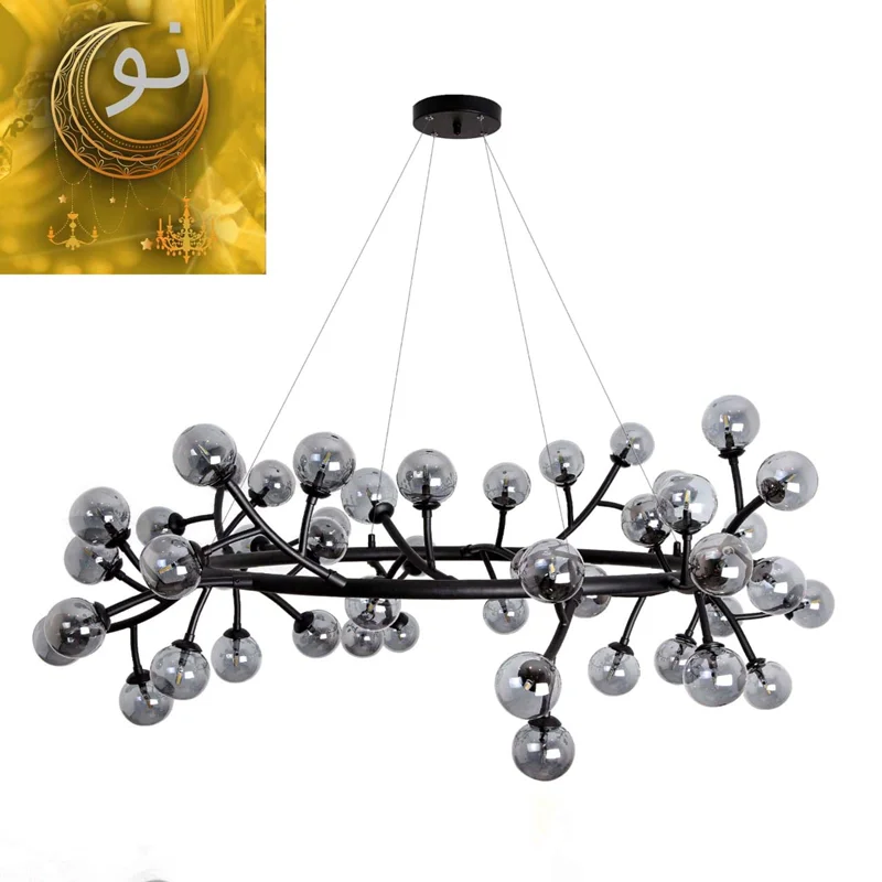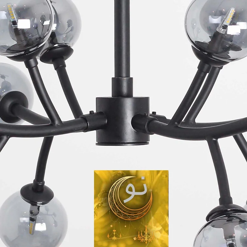 لوستر مدرن آویزی آرک لایت 16 شاخه با طراحی شیک و زیبا مناسب برای استفاده در نشیمن یا اتاق خواب می باشد. فضای تحت پوشش حدود 25 تا 35 متر ابعاد می باشد. قطر کلی این محصول 120 سانتیمتر می باشد و ارتفاع آن بین 50 الی 150 سانتیمتر قابل تنظیم است. این محصول دارای 48 شعله روشنایی می باشد که با حباب های پیرکس قطر 5 سانتیمتر می باشد پوشش داده شده است .طراحی این لوستر بسیار جذاب و خاص میباشد و کیفیت اجرایی این محصول بسیار بالاست .رنگ بدنه این محصول مشکی مات یا طلایی و رنگ حباب این محصول در 3 رنگ متفاوت (حباب دودی ، حباب عسلی ، حباب شفاف ) تولید می شود. لامپ استفاده شده در این محصول لامپ های سوزنی G4 2WATT میباشد.این محصول دارای 2 سال گارانتی بی قید و شرط میباشد.(گارانتی شامل : رنگ بدنه ،حباب، سیمکشی). شدت روشنایی هر لامپ : 100 (Lm) لومن و مصرف حدودی هر لامپ : 2 (W) و قطر کفی : 13 cm