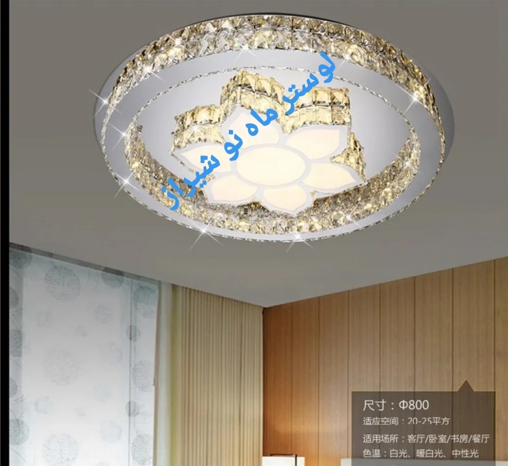 لوستر سقفی پذیرایی نازگل (طراحی سفارشی ماه نو). طرحهای کپی شده، کیفیت، زیبایی و دوام لازم ندارند.) در سایزهای مختلف قابل سفارش می باشد. لوستر نازگل دارای طراحی زیبا و منحصر بفرد بوده و توسط صنایع لوستر ماه نو طراحی و تولید می شود هر گونه کپی برداری از این طرح ممنوع است. سایز محصول (قطر) 50-60-80 سانتیمتر است. این طرح در بخش داخلی دارای 6 برگ برای سایز 60 و 8 برگ برای سایز 80 بوده و دارای کفی پلکسی بوده که زیبایی طرح را افزایش داده است. رنگ این محصول نقره ای یا طلایی طبق سفارش است. ( فلز و ال ای دی SMD و کریستالها همه درجه 1 هستند ). قیمت ذکر شده مربوط به رنگ نقره ای می باشد. . در حالت کنترل هوشمند نور ال ای دی ها قابل کنترل و شدت نورشان کم و زیاد می شود. و لامپها با کلید قطع و وصل می شوند. محصولات مشابه دارای ظاهر متفاوتند. با توجه به کیفیت با هر قیمتی برایتان تولید می کنیم. دارای صفحه آهنی با رنگ الکترواستاتیک جهت استحکام صفحه متصل به سقف می باشد.